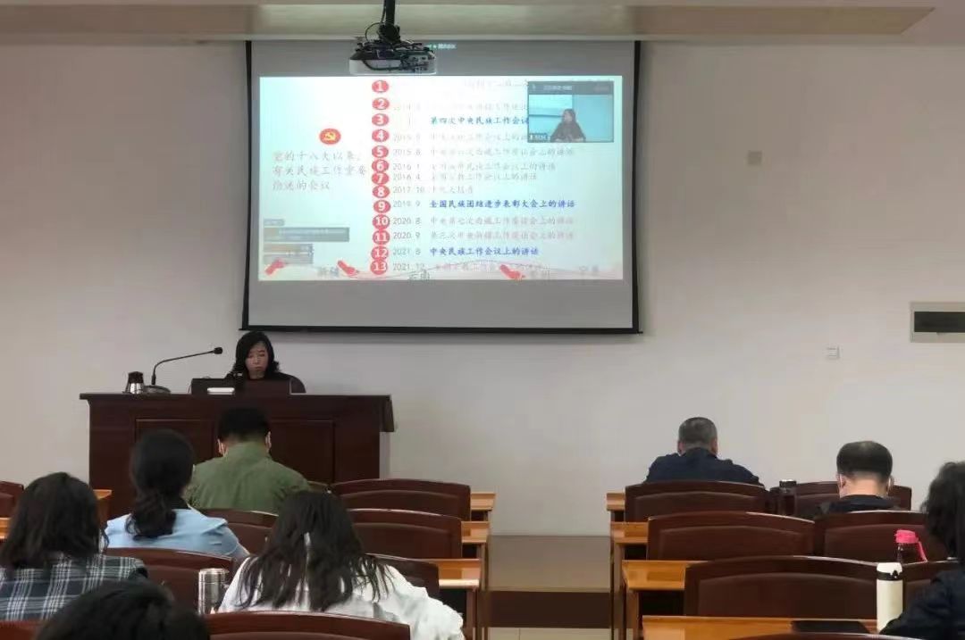 为开展好“民族政策宣传月”工作,进一步加强民族理论政策宣传教育,5月25日下午,机关党委以机关干部大讲堂的形式举办民族团结工作专题讲座,讲座采取现场授课与会议视频相结合的方式进行,200余名教职工通过线上线下相结合的形式参加学习。