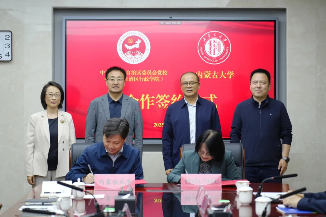 内蒙古党校(行政学院)副校(院)长李红和内蒙古大学副校长达胡白乙拉,以及两校相关处室负责人出席签约仪式。