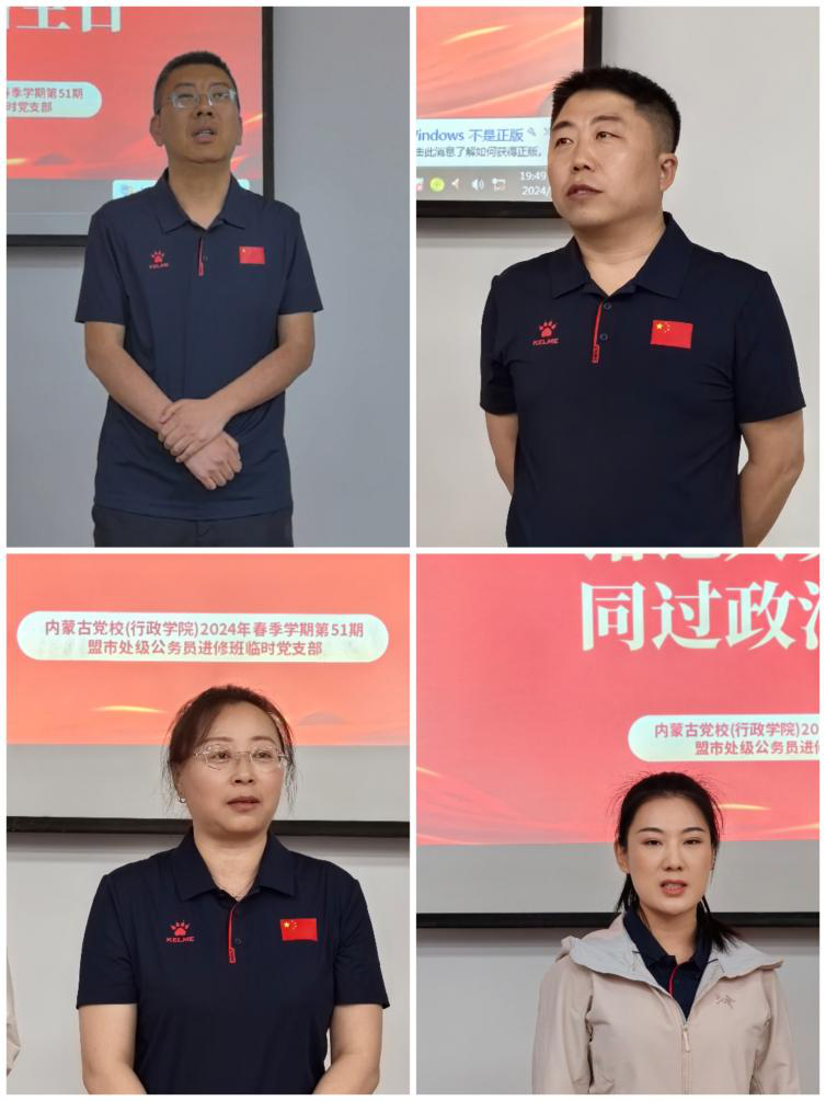 时光流转,一个月的党校培训学习临近结束。为了共同庆祝政治生日,进一步坚定党员理想信念,5月6日晚,内蒙古党校(行政学院)2024年春季学期第51期盟市处级公务员进修班临时党支部组织党员同志,共同开展“铭记入党初心 同过政治生日”主题党日活动。