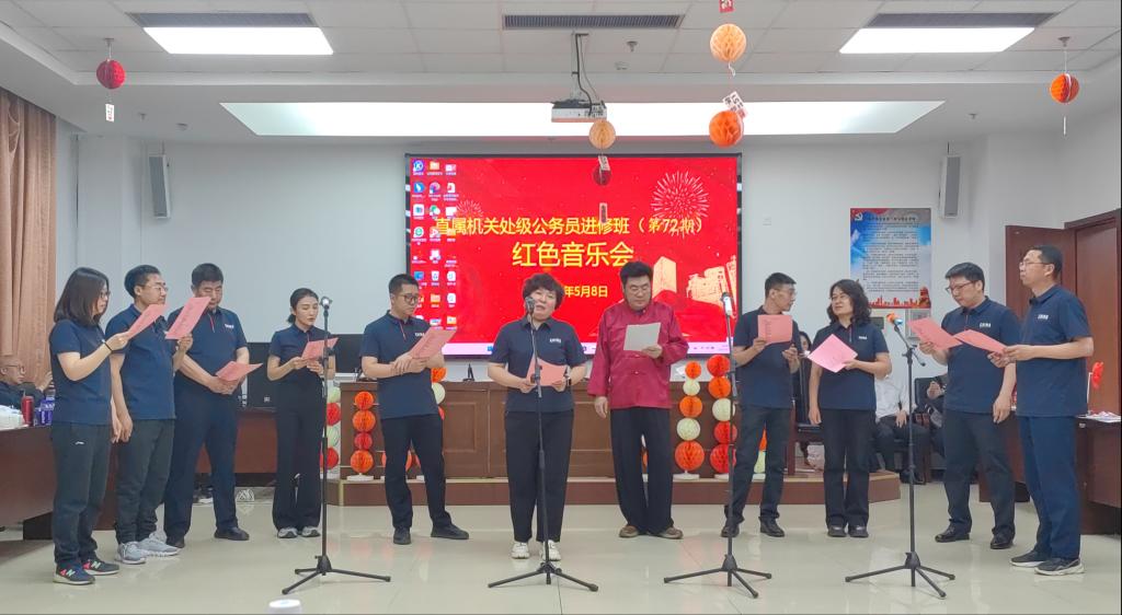 “泥巴裹满裤腿,汗水湿透衣背,我不知道你是谁,我却知道你为了谁……”5月8日晚,内蒙古党校(行政学院)第72期直属机关处级公务员进修班的教室里,传来了悠扬的音乐声。为丰富学员们的学习生活,提升文化素养,一场别开生面的红色音乐会在这里精彩举行。