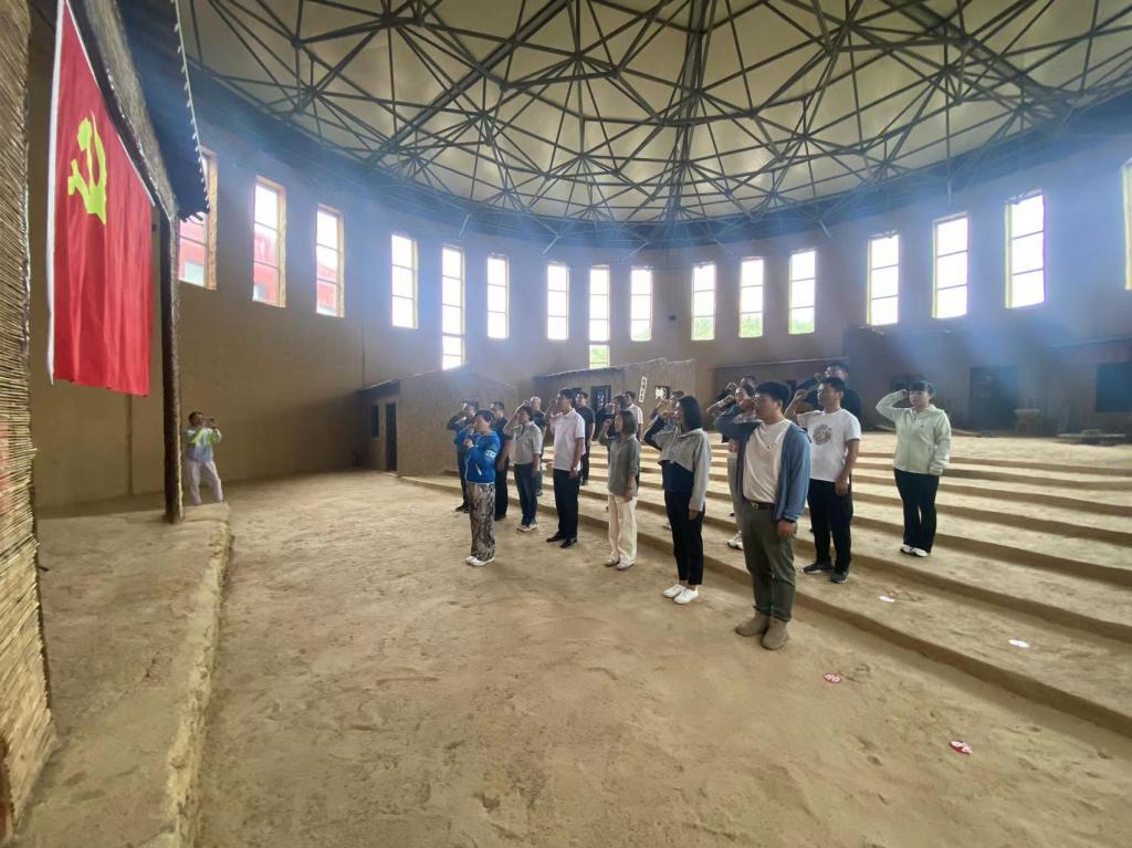 全体党员走进大青山抗日游击根据地展馆进行参观,认真聆听讲解,重温回顾大青山抗日游击战争的历史,深切缅怀革命烈士的丰功伟绩和崇高精神,并面对鲜红党旗重温入党誓词,进行郑重的承诺,激励永远牢记共产党人的初心使命。随后,大家一同前往体育场馆服务中心武川训练基地开展调研,学习考察支部建设的有益经验,并进行内涵丰富的团建活动。