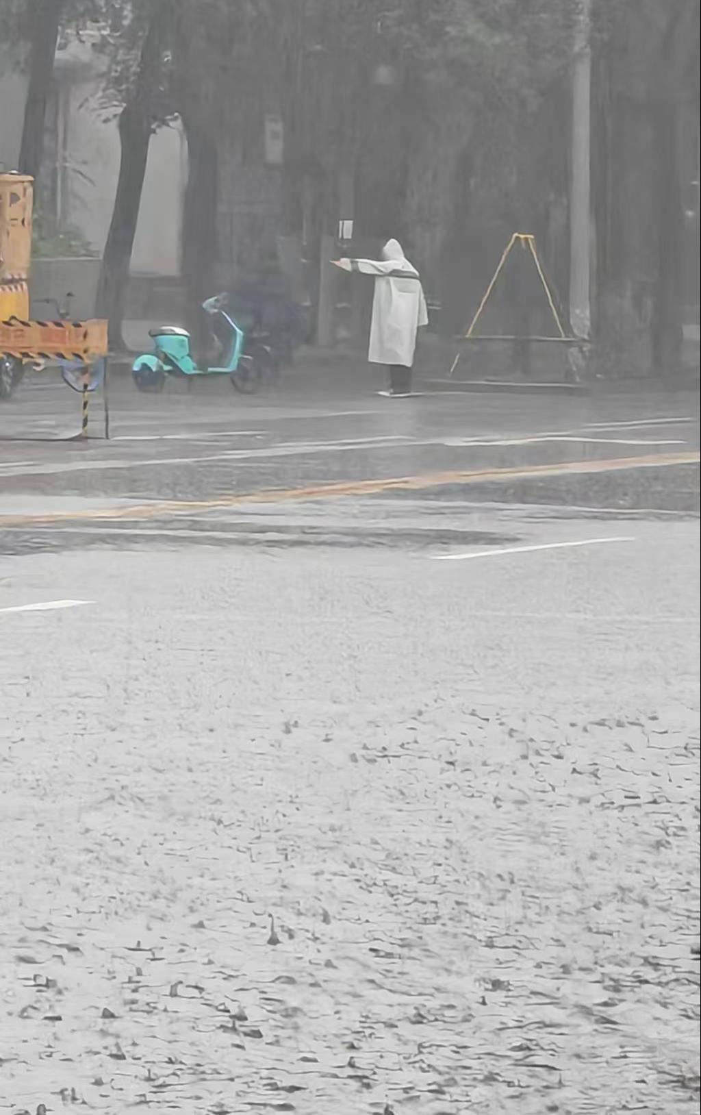 7月26日早上,三十五中东巷、昭乌达路和大学东街交汇口、凯旋广场西门、财富时代小区东墙4个防汛工作点陆续出现风险隐患。7时前,突击队员听令到位,迅速开展路面井盖安全检查、排水口污物清除、裸露电线检查、危墙隐患提示、低洼易陷探试、路面斜坡风险排查等工作。防汛后勤保障人员,克服路面严重积水、道路通行不畅等困难,及时将雨鞋、雨衣、拖鞋、铁镐等物资设备送到防汛点,确保防汛工作顺利开展。