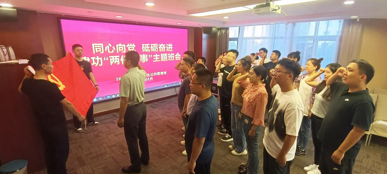 近日,内蒙古党校2022级在职研究生(呼伦贝尔)班公共管理专业组织开展 “同心向党 砥砺奋进 建功‘两件大事’”系列主题活动。活动分为“重温党的光辉历史”“学习《内蒙古自治区全方位建设模范自治区促进条例》主题党课”以及“围绕建功‘两件大事’研讨交流”三个环节进行,旨在充分发挥学员临时党支部的政治功能和组织功能,以党建引领全体学员将完成好两件大事作为坚定拥护“两个确立”、坚决做到“两个维护”的具体实践。