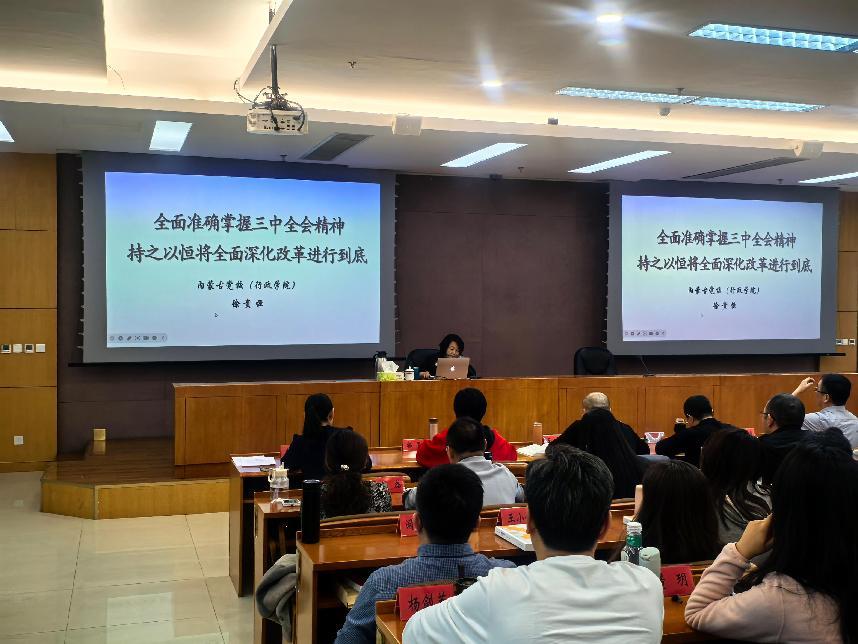 为持续深化党的二十届三中全会精神学习,进一步教育引导广大学员深刻理解、把握会议精神实质,切实把思想和行动统一到党中央决策部署和自治区党委工作要求上来,11月23日下午,2024级在职研究生直属班开展党性教育活动。内蒙古党校国家治理教研部二级教授徐贵恒作专题授课。