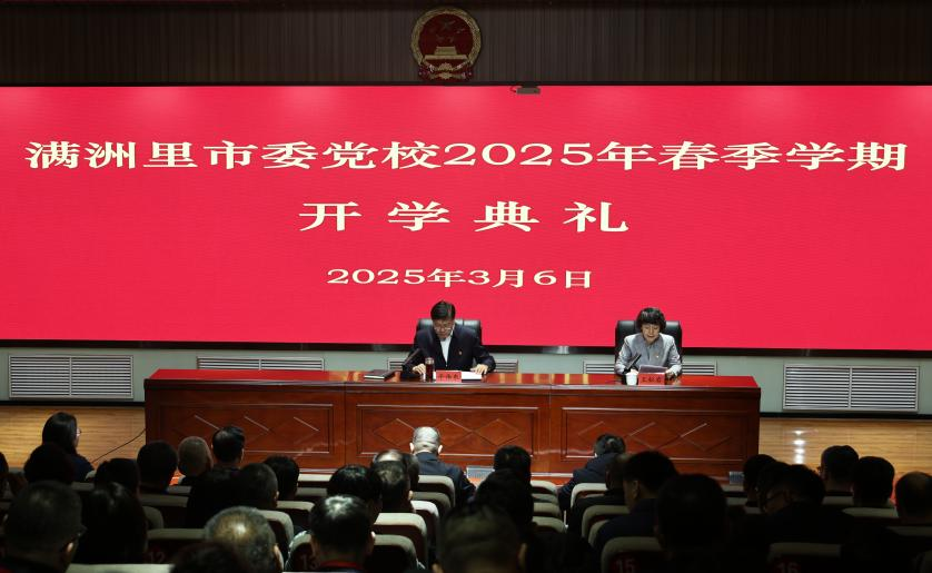 3月6日,满洲里市委党校举办2025年春季学期开学典礼。呼伦贝尔市人大常委会党组书记、主任,满洲里市委书记、市委党校校长于伟东出席并讲授专题党课,岳国栋、王长春等市领导参加开学典礼,满洲里市委常委、组织部部长王松岩主持。