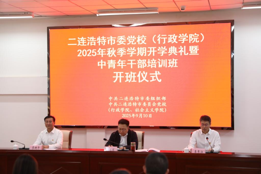 9月10日,二连浩特市委党校2025年秋季学期开学典礼暨中青年干部培训班开班式在市委党校干部教育培训基地举行。盟委委员、市委书记、党校(行政学院)校(院)长王三石出席并讲话,市委常委、组织部部长李秀江主持开班式。