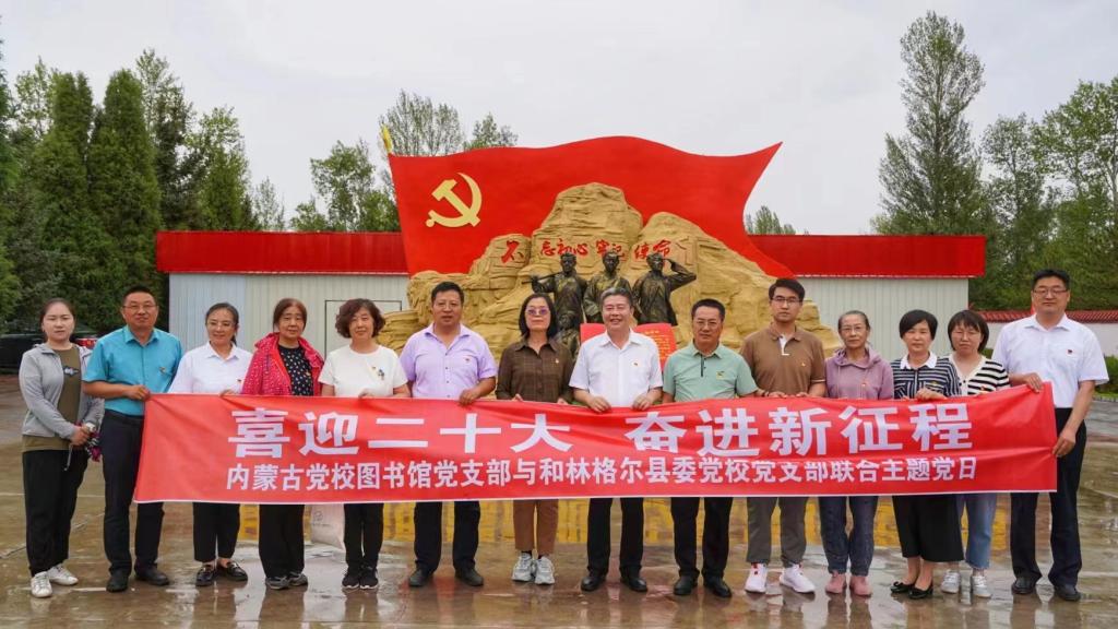 在庆祝“七一”党的生日之际,为加强党性修养、坚定理想信念,7月5日,图书馆党支部与林格尔县委党校党支部联合开展“喜迎二十大 奋进新征程”主题党日活动,赴和林格尔县白二爷沙坝治沙精神主题教育基地参观学习。教育长李学军、和林县人大主任张全胜、组织部长、县委党校校长马文静及两个支部20余人参加了活动。